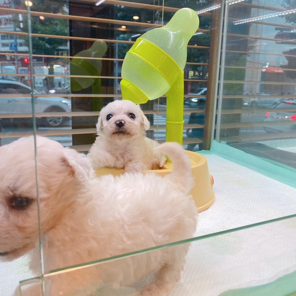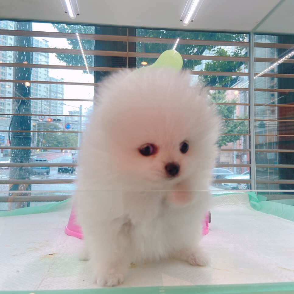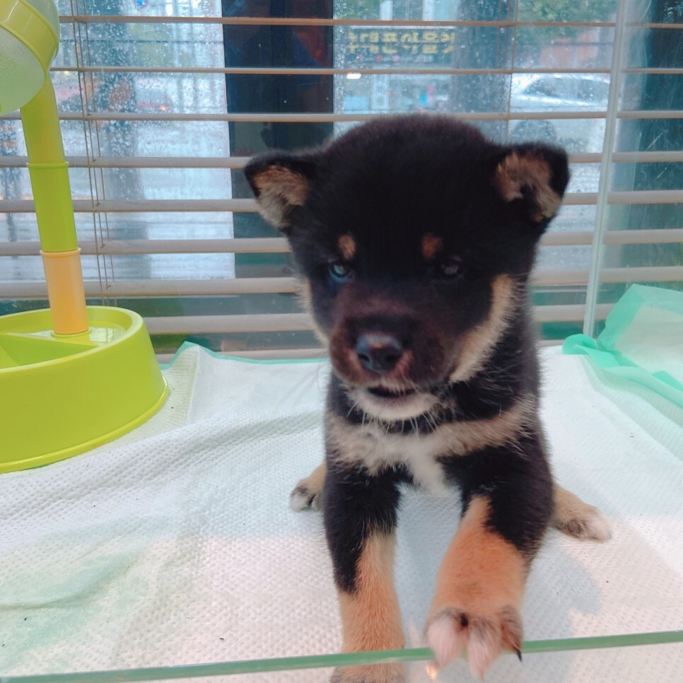 아이가 현풍강아지분양 샵에서 기다리며